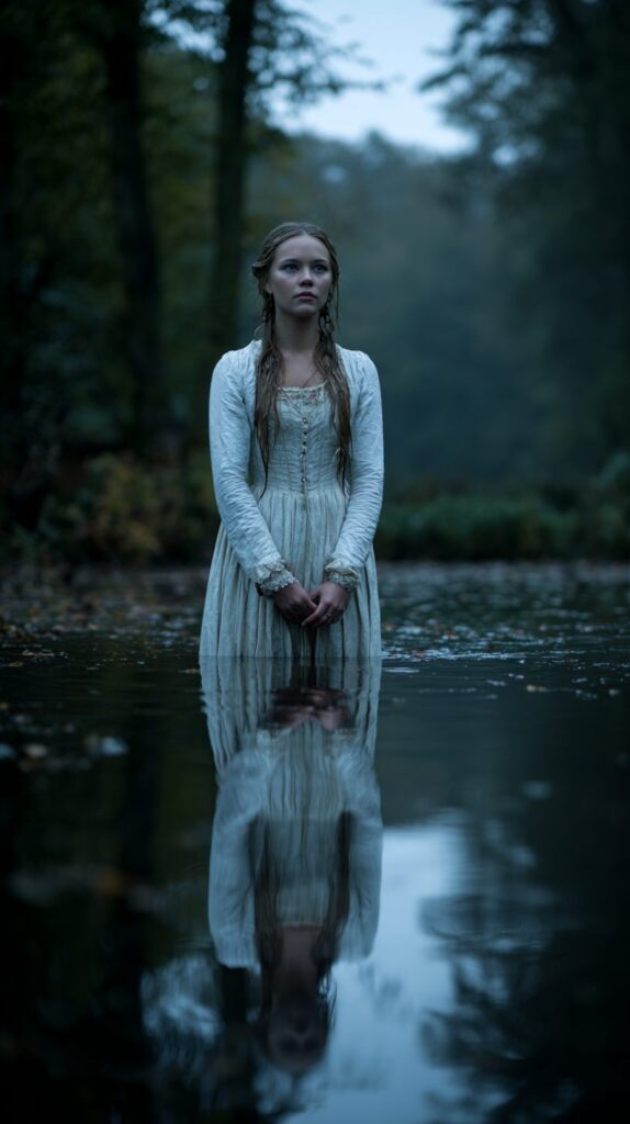 Ophelia — my cinematic alter ego — appeared poised and fragile. Every pixel carried subtle tension: water ripples, collarbone rising slightly with breath, fingers barely disturbing the surface.