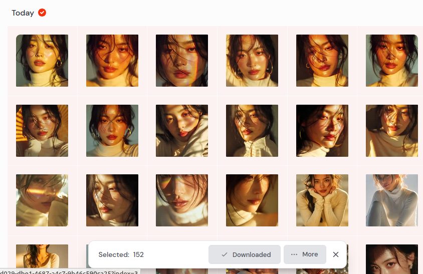 AI image generation always involves heavy filtering. Out of 153 generated images: